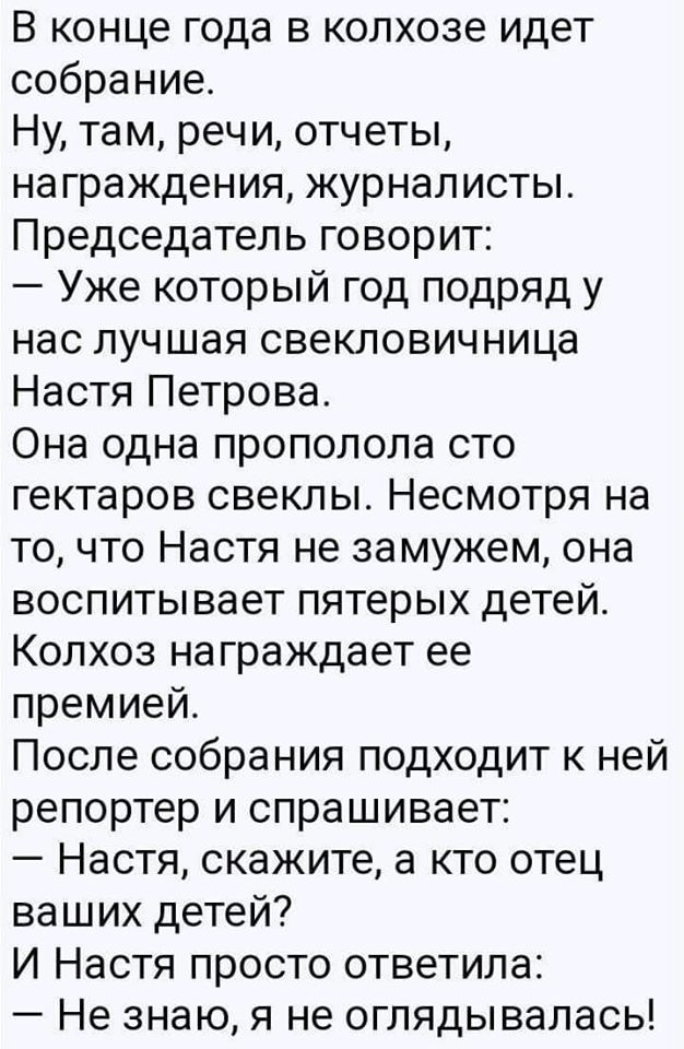 как ей живется с новым мужем. Она ответила: "Конечно, мой новый муж не такой